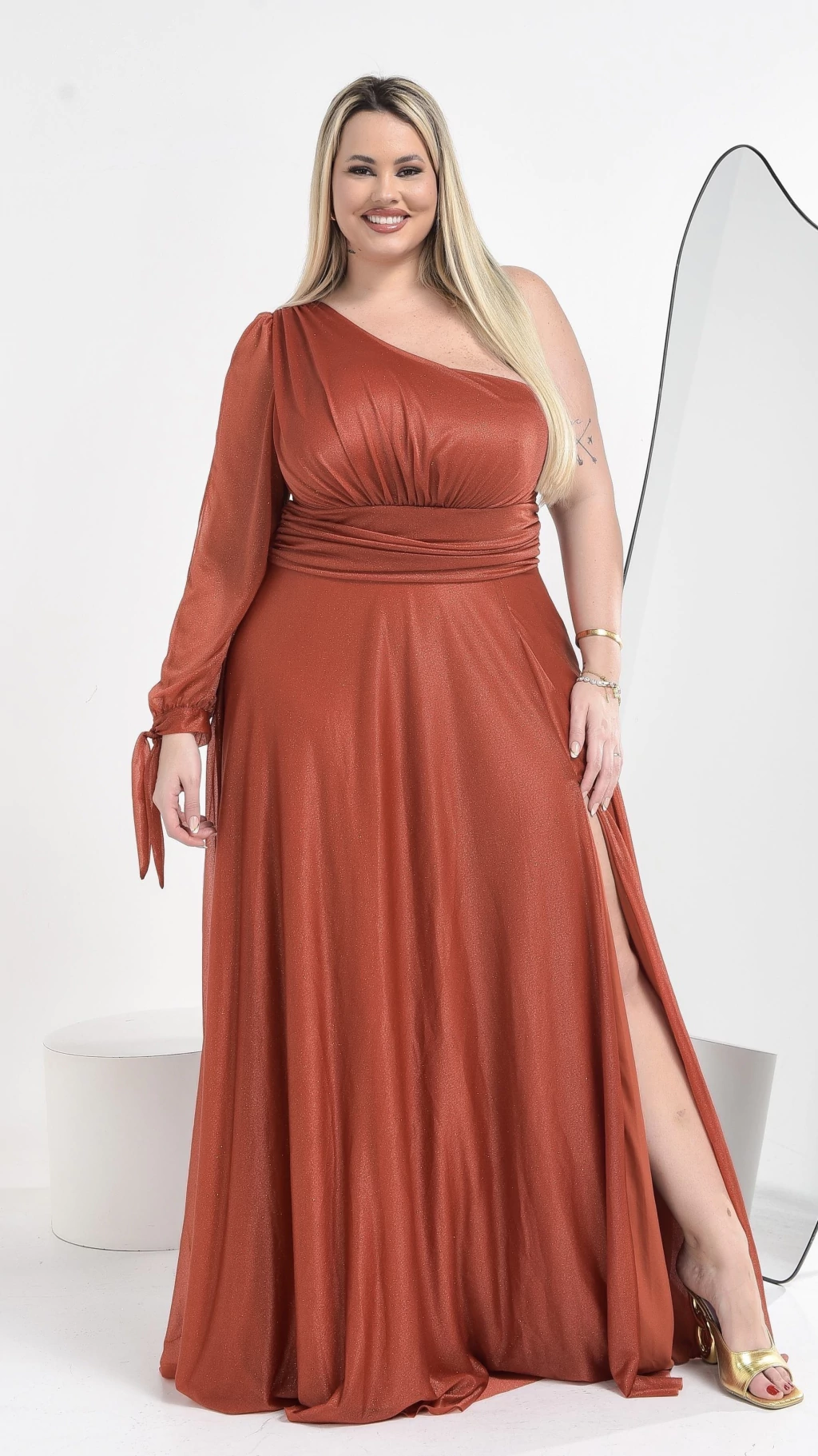 A modelo Plus veste tamanho GG